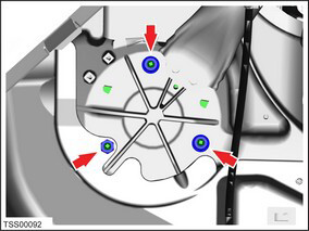 - Remove the nuts (x3) that attach the air spring module top mount (torque 39 Nm).