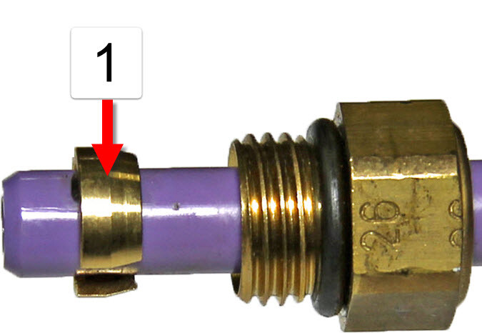 1 Collet - Secure a new VOSS fitting onto the component. Remove any plastic plugs from the new fitting.