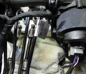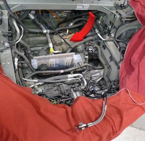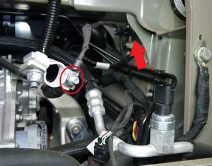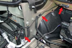 - Disconnect the high side A/C PT sensor connector and the LH front impact sensor harness and set the narness aside.