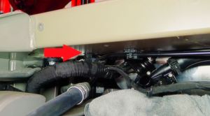 - Release the clip that secures the RH body harness to the bottom of the front crossmember.