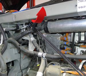 NotePull the 2-line brake bundle upward while bending the flexible lines around the 4-line brake bundle and the coolant hose.