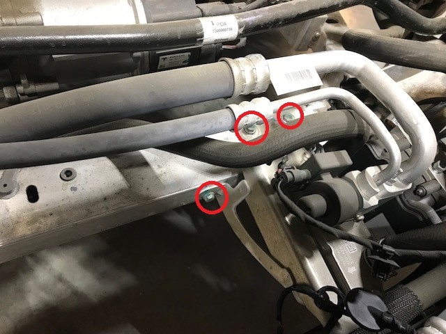 - Remove the bolts (x3) that attach the chiller to the subframe (torque 5 Nm).