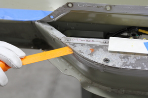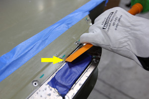 - Hold the Rapid Mate plate up slightly with a non-conductive wedge tool and apply a bead of sealant inside the gap. Make sure that the sealant bleeds out of the LH and RH ends of the Rapid Mate plate. Use a flashlight or shop light to check the sealing area for complete coverage. Apply additional sealant as needed.