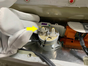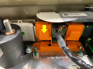 - Remove the tape that held the pack contactor insulator sheet out of the way.