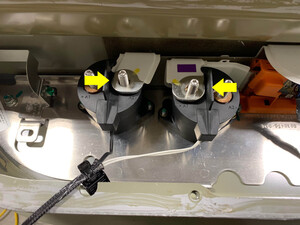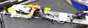 - Release the rightmost fir tree clip for the low voltage communication harness.