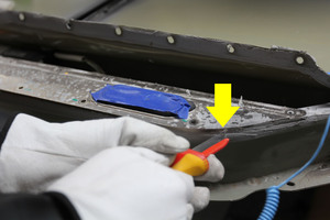 - Use a flashlight or shop light to check the HV battery sealing area for complete coverage. Apply additional sealant as needed.