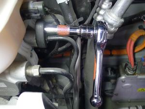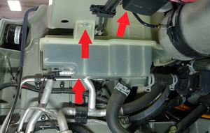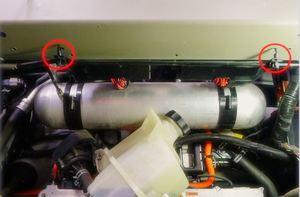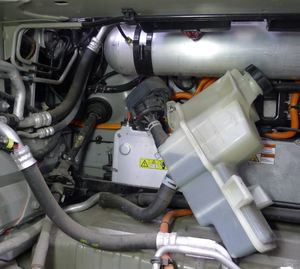 - Put the coolant reservoir to the side, on top of HV battery. Do not remove the reservoir cap.