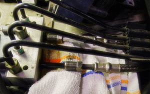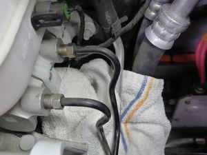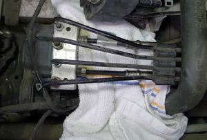 - Clean the areas around the master cylinder and ABS module and put shop rags under the brake lines.