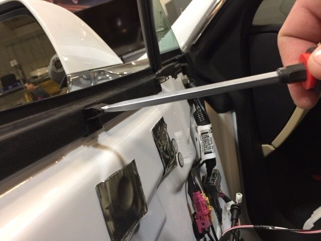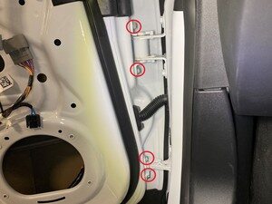 - Gently spread the upper door clips (x5) with a screwdriver to ensure adequate holding force to the door panel.