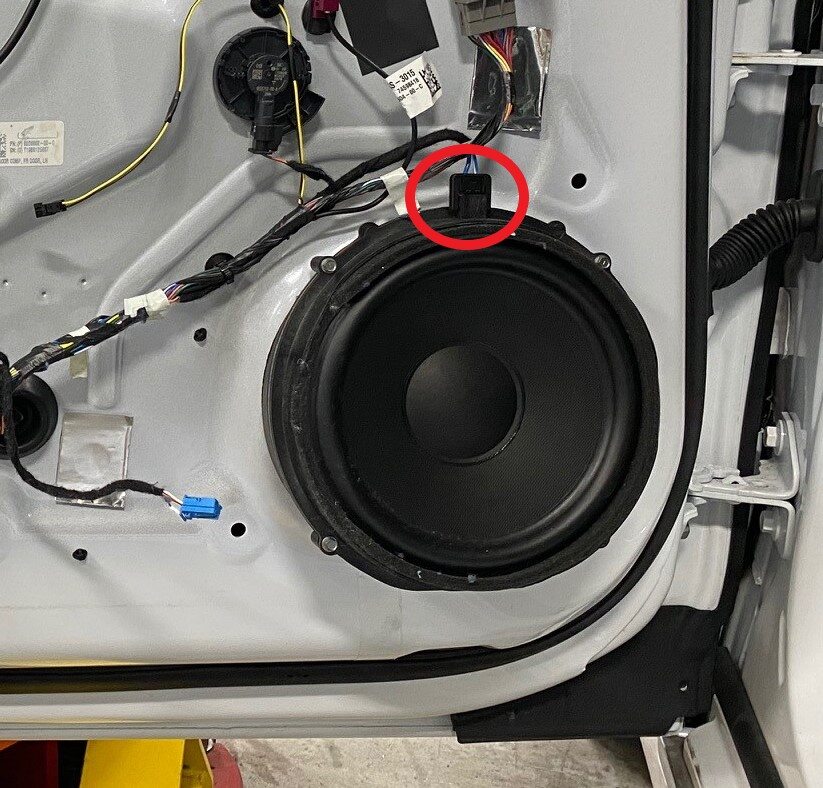 - Disconnect the door harness connector to LH front door speaker.