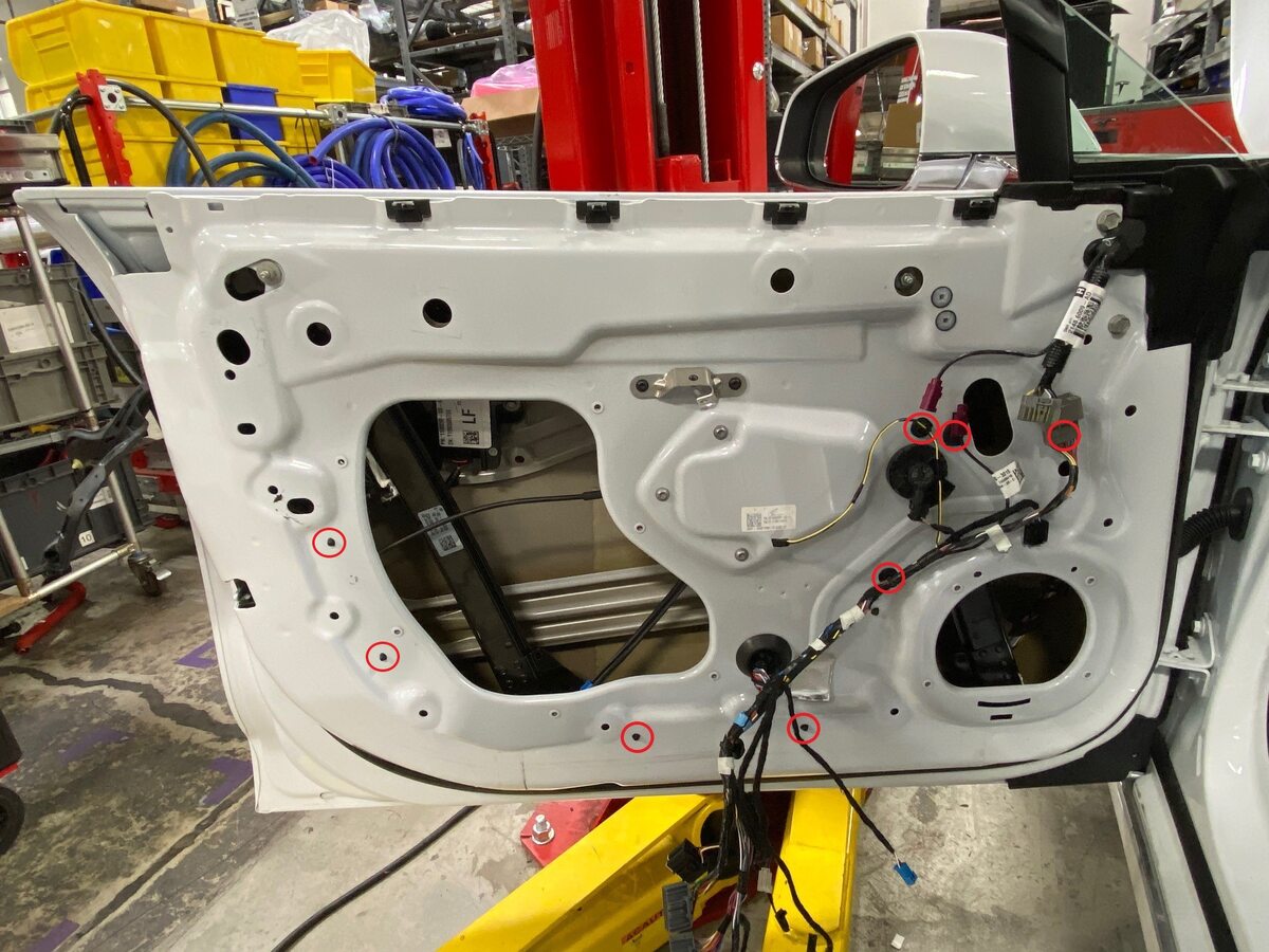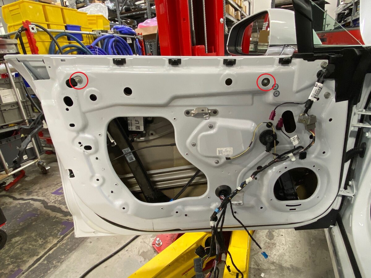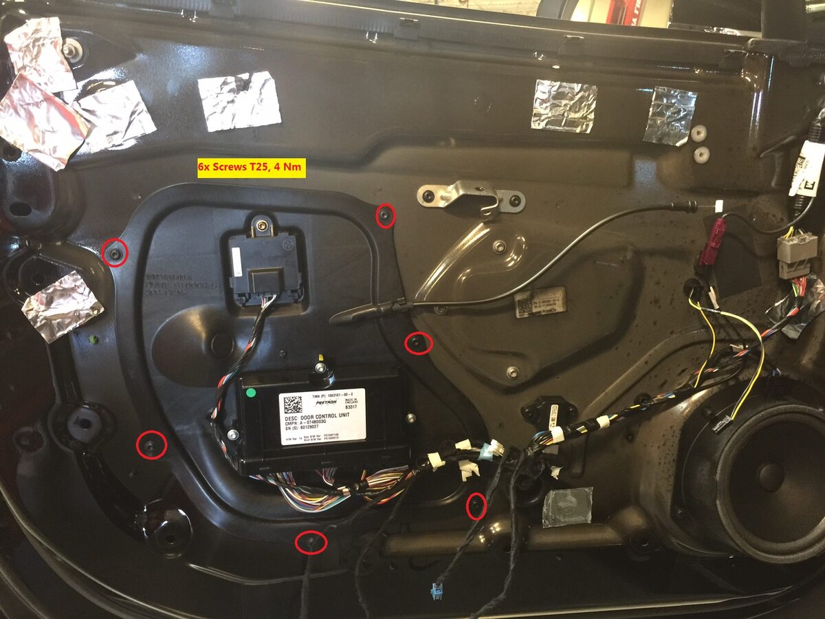 Note6x bolts, T25, 4 Nm. 1x clip to door wiring harness