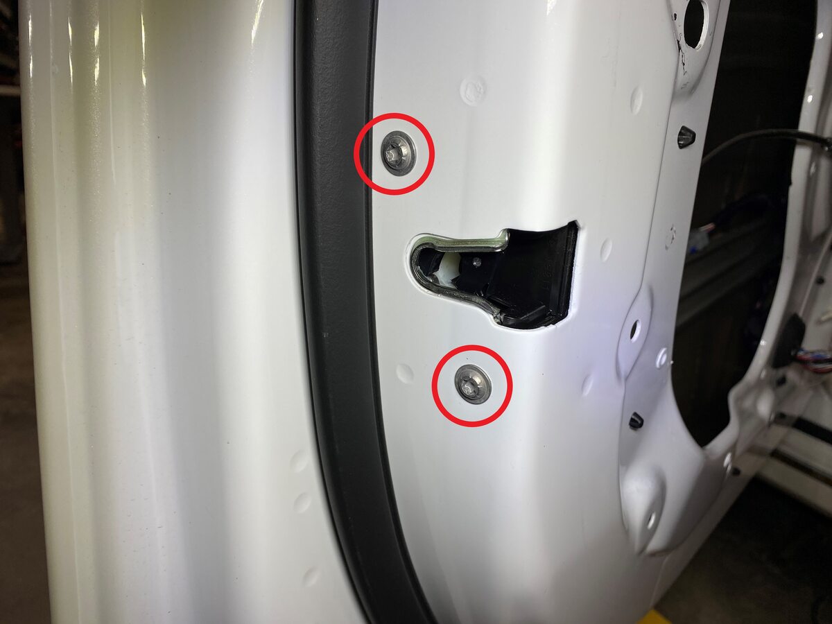 - Remove the bolts (x2) that attach the latch to the door assembly.