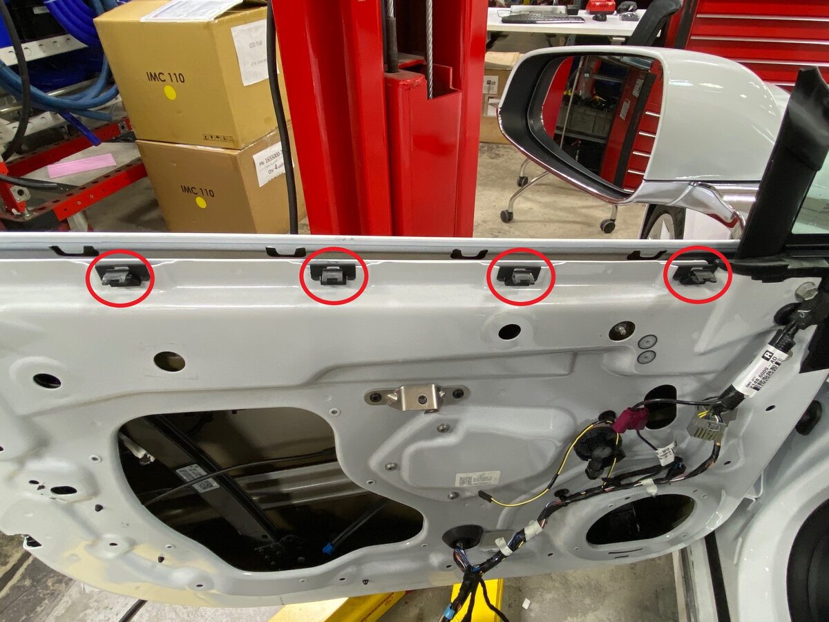 - Install the upper door clips (x4) onto the door assembly.