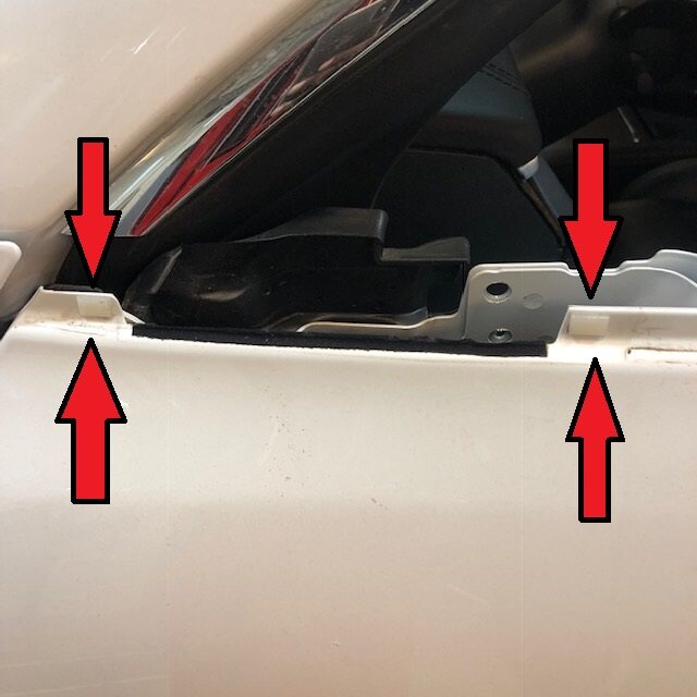 - Remove the clip on the door flap seal to gain access to the exterior mirror assembly bolts.