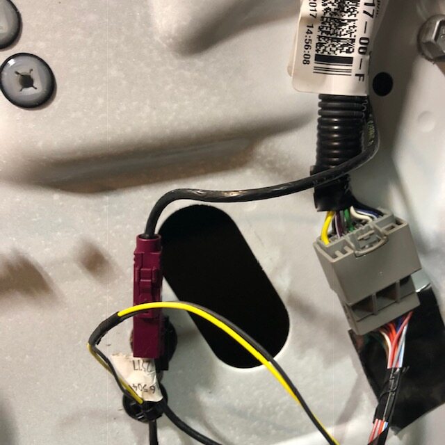 LH front door harness to the door assembly.