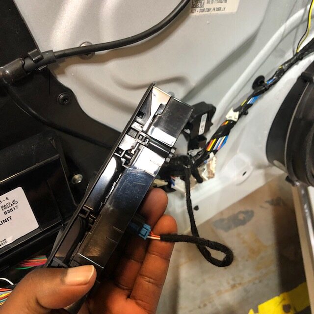 - Disconnect the door harness connector to the door handle controller.