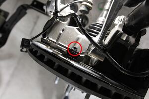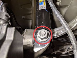 that secures the spring assembly to the knuckle is inserted towards the rear of the