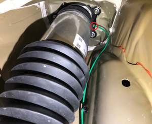 - Secure the tabs (x2) to install the LH rear air spring module harness bracket to the air spring.