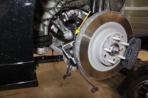NoteRoute the air spring module past the brake line mount, align the module on the mounting studs, and then insert the lower mount to the knuckle.