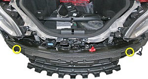 - Remove and discard the outboard clips (x2) that secure the foam assembly to the front bumper.