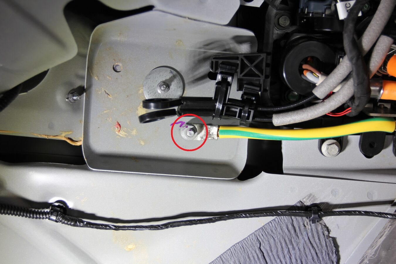 - Release the clips (x2) that attach the HV harnesses to the body studs.