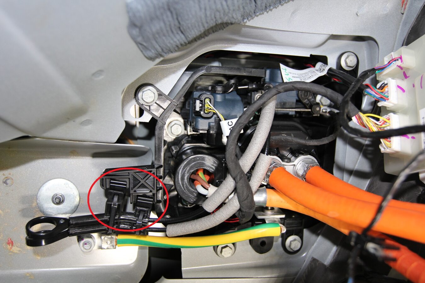HV harnesses to the charge port housing.