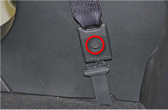 - Use a trim tool to carefully remove the anchor bolt cap from the inboard upper pretensioner cover.