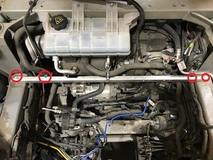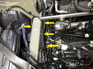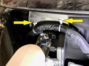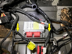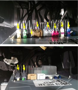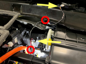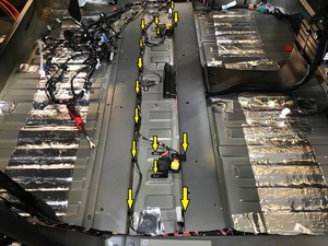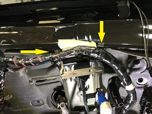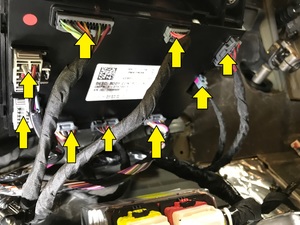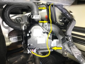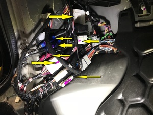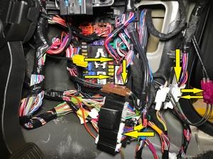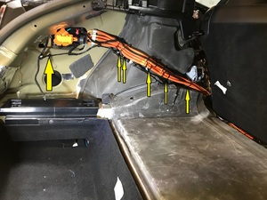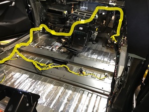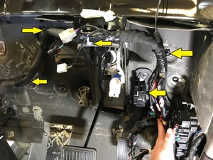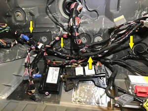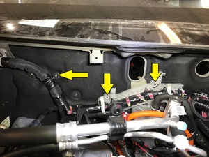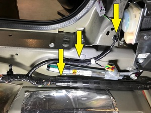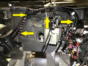 Note3x connectors, 2x harness clips, Tuck excess harness under carpet to prevent NVH concern.