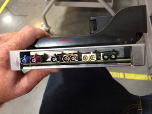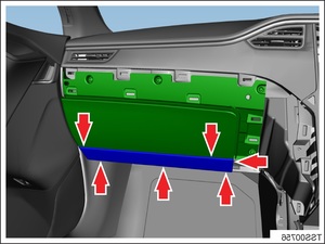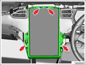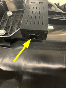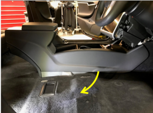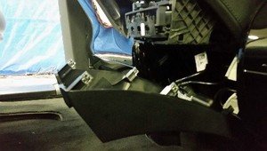 - Disconnect laptop from vehicle and reinstall storage cubby.