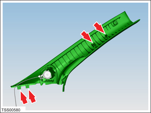 Note4x clips, The number of clips securing the A-pillar sill trim varies depending on vehicle production date, Replace any damaged or missing clips prior to re-installing sill trim.