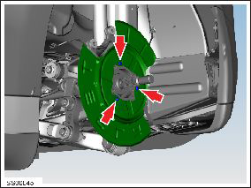- Remove the screws (x3) that secure the rear brake dust shield to the knuckle (torque 8 Nm).