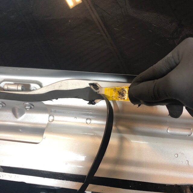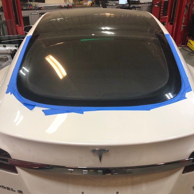 - Apply tape to body surrounding liftgate glass for protection