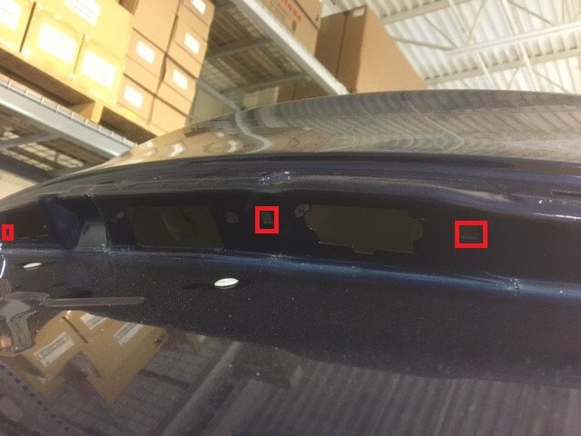 Note5x clips Recommend using the badge removal wire to release adhesive on the tail lamps, Note the center of the applique is secured by clips, Take care not to damage applique or body
