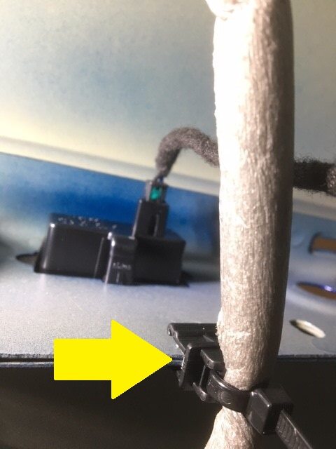 - Secure CHMSL harness to liftgate glass
