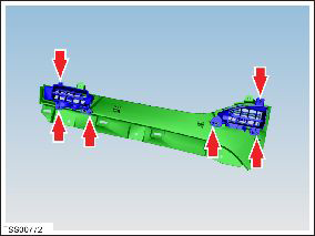 - In the upper area behind the glove box, remove the 2 screws (torque 10 Nm) that secure the passenger airbag to the crossbar beam.