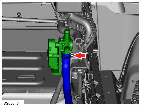 - Release the clip that secures the coolant hose to the valve. Release the hose from the valve.