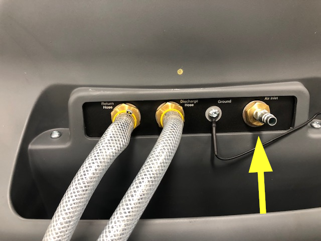 - Connect the shop air line to the flush machine "Air Inlet" port.