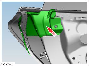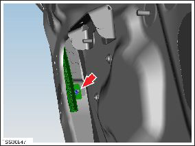 - Remove bolt securing window guide to door (torque 11 Nm). NOTE: Seal removed for clarity.