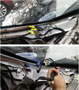 LH A-pillar and remove harness from guide channel