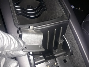 - Remove the phone dock mat from the premium center console sub-assembly.