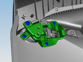 - Remove the screws (x3) and the nut (x1) that secure the interior door handle to the trim pad (torque 3 Nm).
