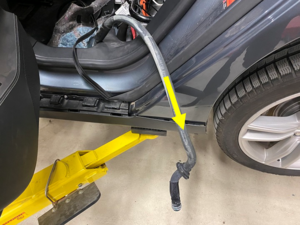 - Pull the LH rocker side hose assembly to the rear, and then pull it out from the rear LH side of the vehicle.