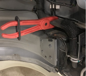 - Clamp the coolant hose that is connected to the powertrain coolant pump.