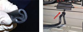 - Fold the straight end of the new hose into a U-shape and slide it into the grommet from the underhood area.