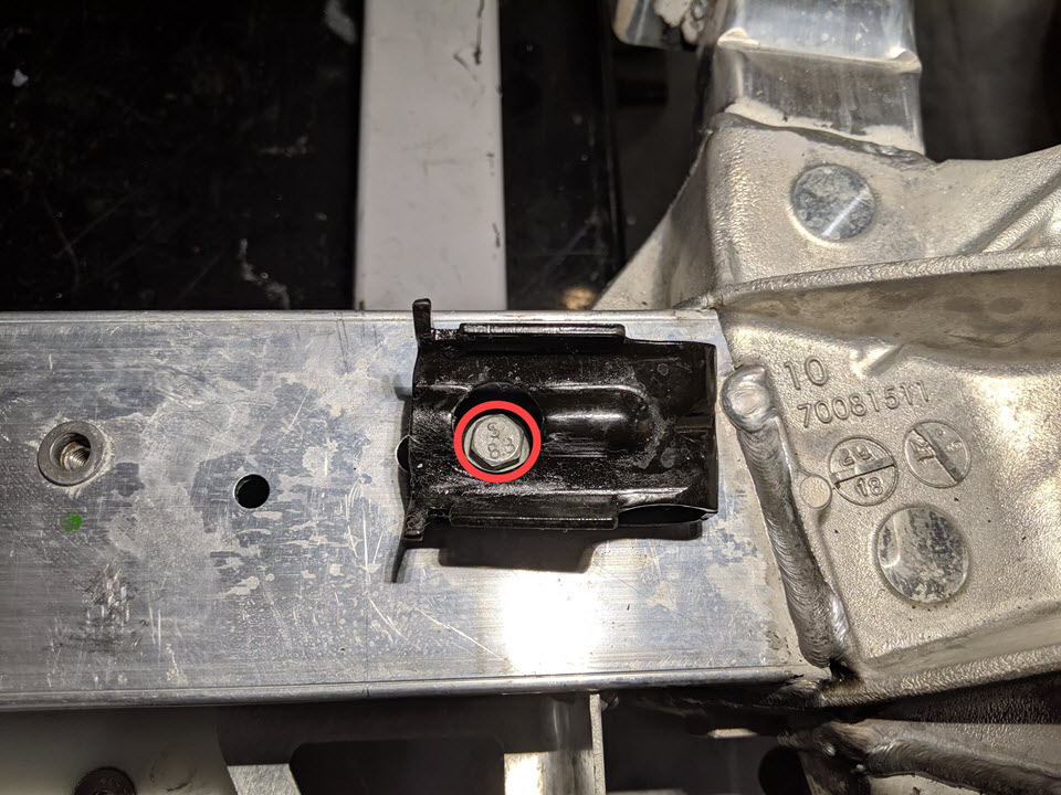 - Remove the bolt that attaches the battery pump 2 bracket to the front subframe assembly, and then remove the bracket from the subframe.