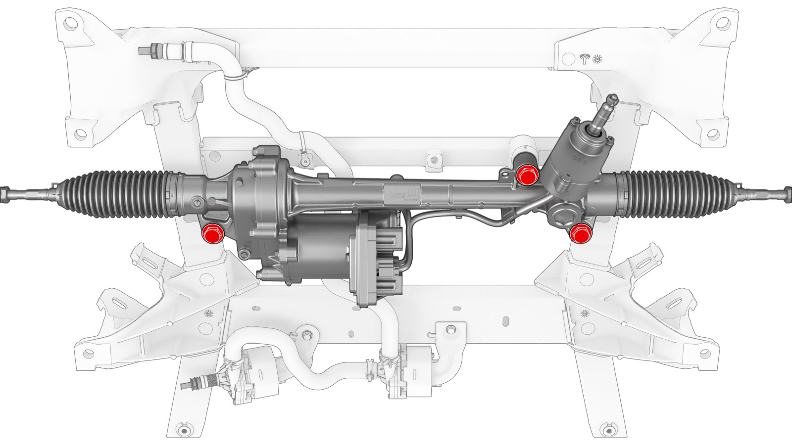 - Remove the bolts (x3) that attach the steering rack to the front subframe assembly, and then remove the steering rack from the subframe.