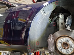 Install butyl patch squares onto openings for the front drive unit cables on the HV junction box to prevent dirt/water ingress