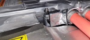 Note1x bolts, 8mm, 4 Nm, Clean HV cable and HVJB connecting points with IPA wipes, Allow 1 min for IPA to dry