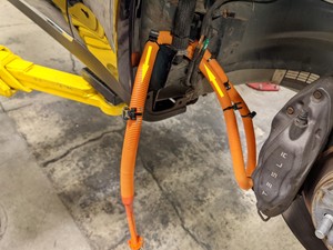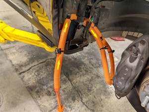 NoteIf the positive and negative cables of the HVJB to FJB HV harness are of different length, then replacement of the HVJB to FJB HV Harness is not necessary. Discontinue this procedure and go to the identical step in HV Junction Box (Retrofit). If the positive and negative cables are of the same length, then continue to the next step.