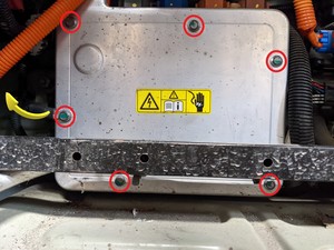 Note6 bolts, 8mm, 6.5 Nm, Move ground strap aside